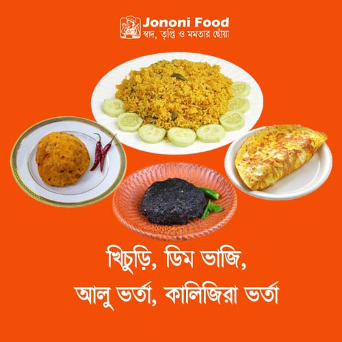নরম ও সুগন্ধি খিচুড়ির সঙ্গে ক্রিসপি ডিম ভাজি, মসৃণ আলু ভর্তা এবং স্বাদে অনন্য কালিজিরা ভর্তা একসাথে পরিবেশিত হলে খাবারের প্রতিটি কামড়ে মিলবে ঘরোয়া স্বাদের আনন্দ। খিচুড়ির কোমলতা ডিম ভাজি ও ভর্তার স্বাদের সঙ্গে মিলিয়ে তৈরি করে একটি পরিপূর্ণ ভোজন। দুপুরের বা রাতের খাবারে এই কম্বিনেশন সহজেই তৃপ্তি ও পুষ্টি প্রদান করে, যেটি ঘরোয়া খাবারের আসল স্বাদ উপভোগ করতে সাহায্য করে।