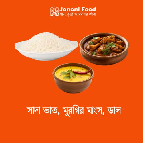 নরম সাদা ভাত, মশলাদার মুরগির মাংস এবং পুষ্টিকর ডালের সেরা সংমিশ্রণ—ঘরোয়া স্বাদের অনন্য আনন্দ।