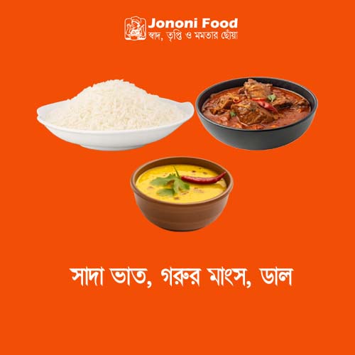 এই মেনু শুধু স্বাদের দিক থেকেই নয়, পুষ্টির দিক থেকেও সম্পূর্ণ। গরুর মাংসে আছে প্রোটিন ও আয়রন, ভাতে আছে শর্করা যা শরীরকে শক্তি দেয়, আর ডালে আছে ভিটামিন ও মিনারেল যা প্রতিদিনের প্রয়োজনীয় পুষ্টি যোগায়। দুপুরের জমজমাট ভোজ হোক বা রাতের আরামদায়ক ডিনার—প্রতিটি পরিবেশেই এটি উপযুক্ত।