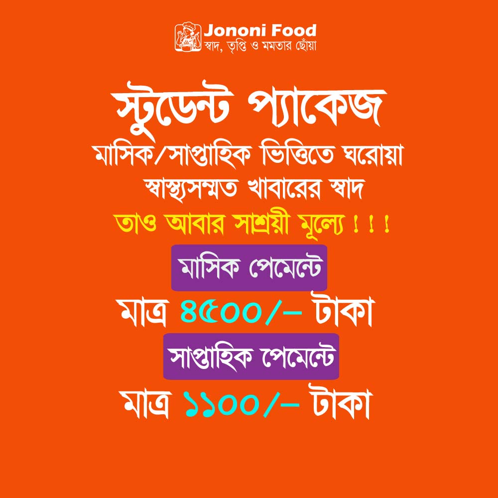 স্টুডেন্ট প্যাকেজ তৈরি করা হয়েছে ছাত্রছাত্রীদের বাজেটের কথা ভেবেই। কম খরচে সুস্বাদু ও পুষ্টিকর খাবার।