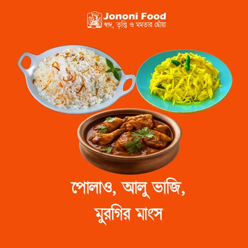 দুপুরের বা রাতের ভোজনের জন্য এই কম্বিনেশন আদর্শ। যারা খুঁজছেন ঘরোয়া স্বাদ, পুষ্টি এবং পূর্ণ তৃপ্তি একসাথে, তাদের জন্য পোলাও, মুরগির মাংস ও আলু ভাজি নিখুঁত পছন্দ।