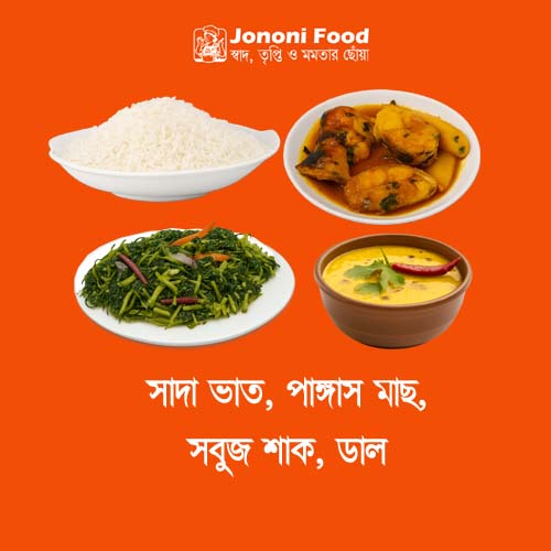 সাদা ভাত, পাঙ্গাস মাছ, সবুজ শাক ও ডাল – এটি এমন একটি ঐতিহ্যবাহী বাঙালি খাবার, যেখানে স্বাদ ও পুষ্টি দুটোই সমানভাবে মিলে যায়। গরম সাদা ভাতের সাথে পাঙ্গাস মাছের ঝোল শুধু স্বাদের জগৎকে সমৃদ্ধই করে না, বরং প্রোটিন ও প্রয়োজনীয় পুষ্টিগুণও যোগায়। এর সাথে তাজা সবুজ শাক ভিটামিন ও খনিজের অন্যতম উৎস, আর ডাল সরবরাহ করে প্রোটিন ও ফাইবার, যা শরীরকে দেয় শক্তি ও হজমে আনে স্বস্তি।